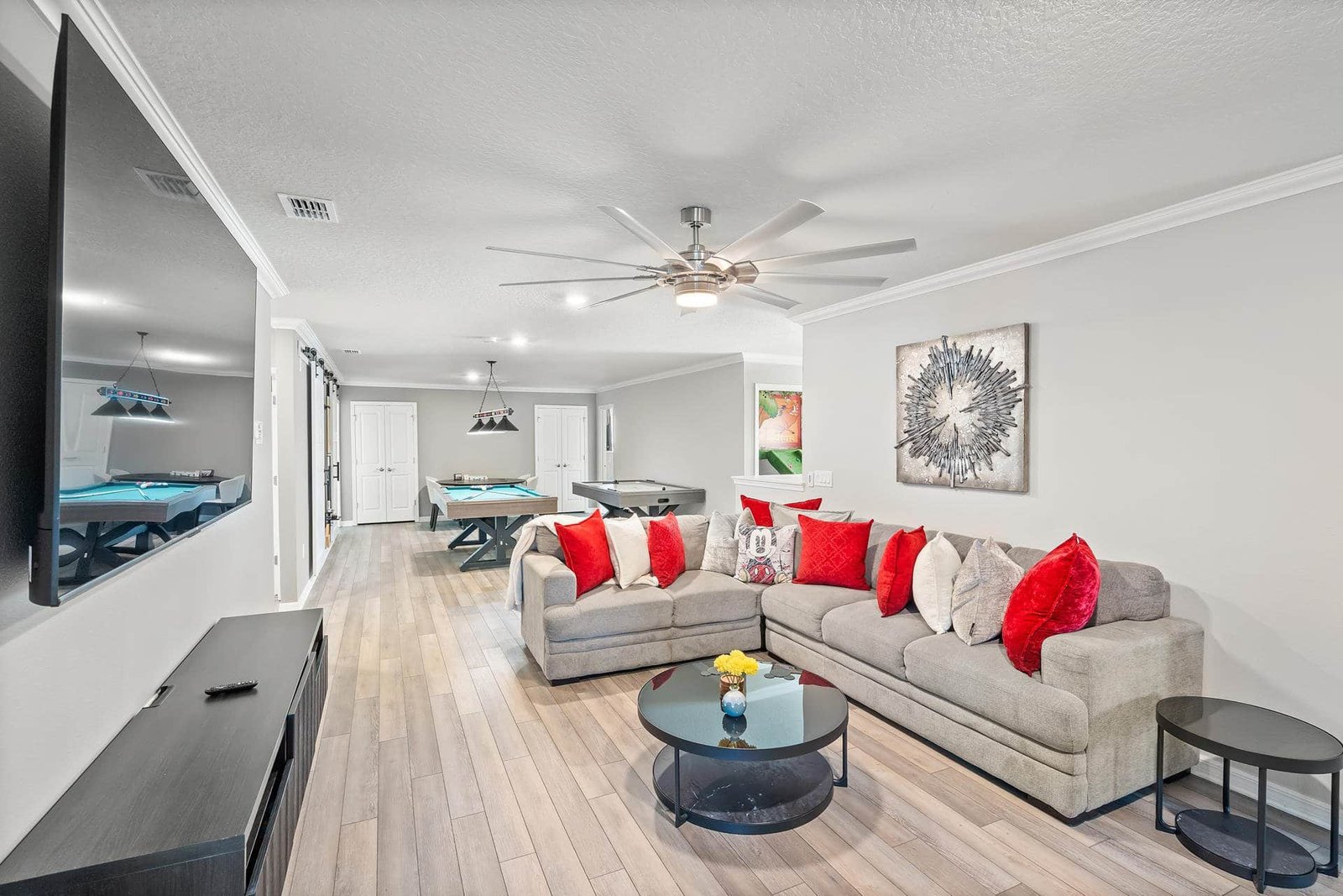 Beautiful and modern home that is great for large families! The kids loved the Harry Potter Room and the game room! We enjoyed having space and loved having access to the resort's pool club. The drive is only 15 minutes from Disney Parks, which was the main reason we chose this location. Highly recommend this place and we will be back in the future!